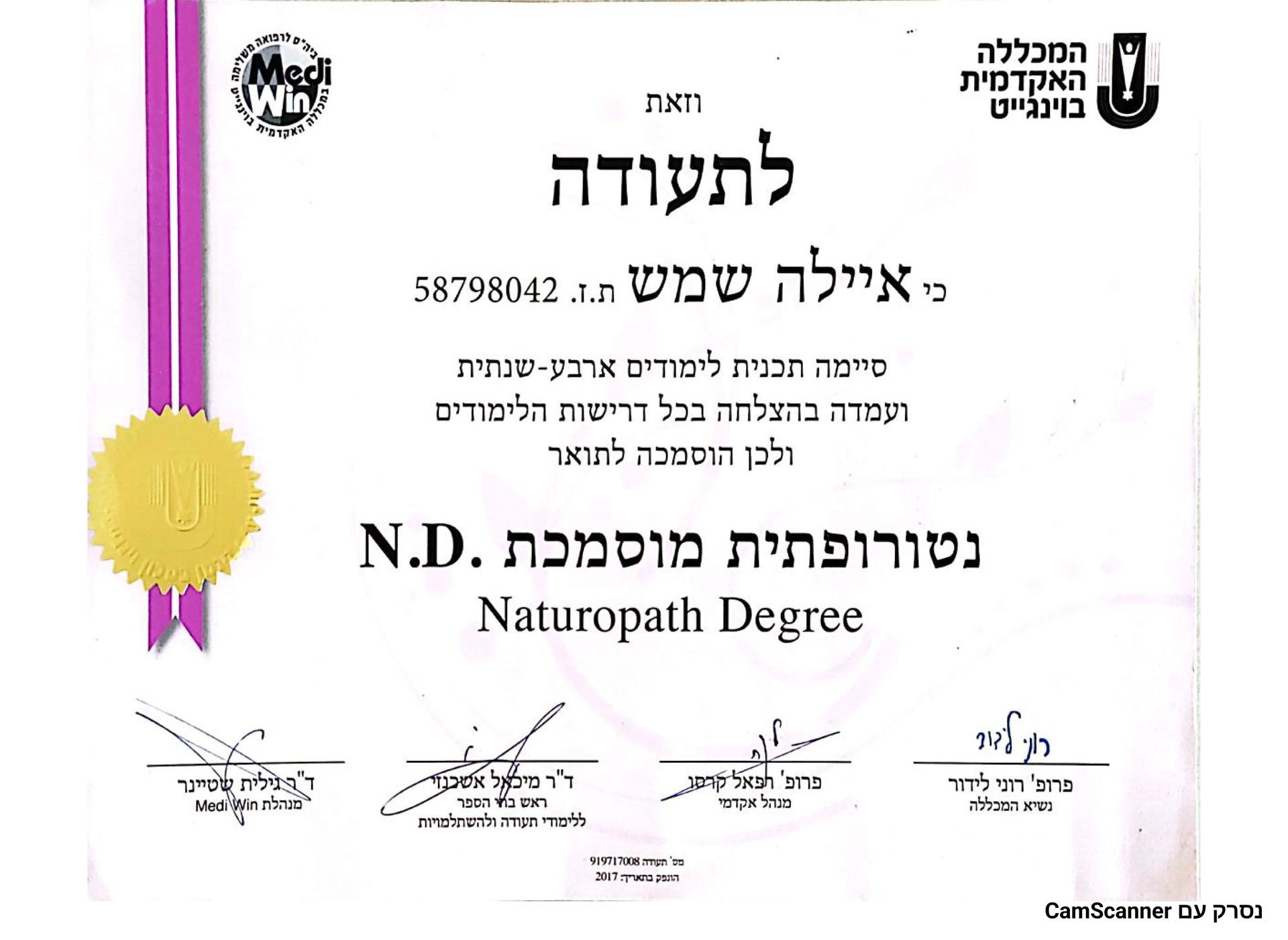 - מוסמכת כמטפלת בנטורופתיה מטעם מכללת וינגייט